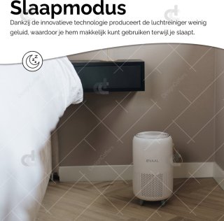 - Stille nachtrust: in slaapmodus wordt het geluid teruggebracht tot 28 dB en dimmen de lampjes automatisch — optimale combinatie van schone lucht en comfort.