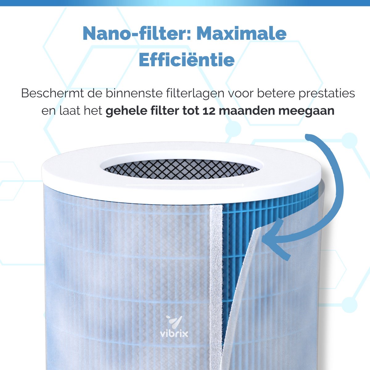 - Nano-filter – Vangt grote deeltjes zoals stof en haren op